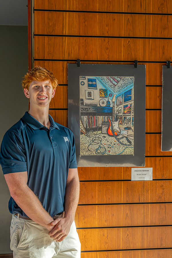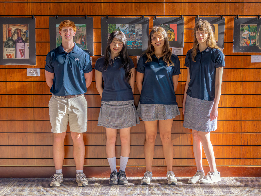 Each spring, Upper School AP Art students display selected pieces from their portfolios in the Performing Arts Center Gallery, offering the JA community a window into a year’s worth of creative work, growth, and artistic discipline. On display this year are selected pieces created by Preston Perkins, Crystal Gao, Justina Visgarra, and Ellie Morgan.