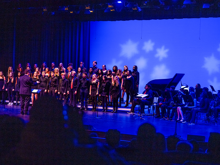 The evening featured a diverse lineup of performances that highlighted the depth of talent within JA’s performing arts programs. The JA Band Color Guard opened the show, followed by first-time performances from younger band members taking the stage. Showtime and Encore, Jackson Academy’s award-winning show choirs, delivered energetic holiday performances, while theatre students presented an a cappella number. The full concert band rounded out the program with seasonal favorites that filled the PAC with holiday spirit.