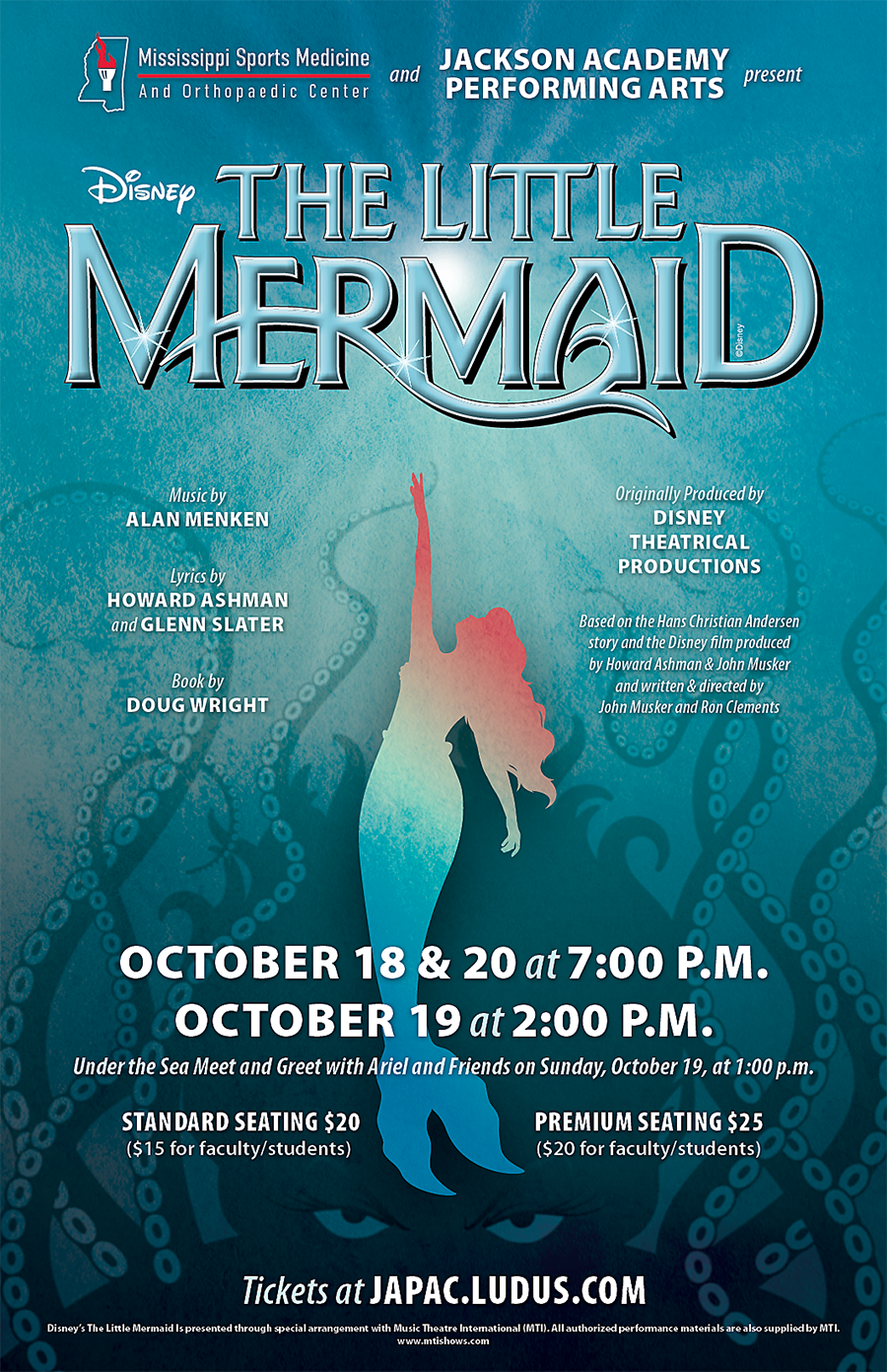 Don’t miss this unforgettable theatrical experience! Purchase tickets for The Little Mermaid and the Meet and Greet at japac.ludus.com.