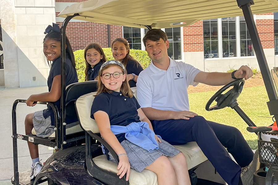 The experience took Tybell across all divisions of campus. She sat in on Mrs. Taylor’s Algebra I class, observing Upper School students tackle advanced mathematics. Over lunch in the cafeteria, Tybell hosted friends while discussing her morning adventures. The afternoon shift brought a different responsibility: a golf cart ride with Mr. Hinkle to conduct a campus safety check, examining facilities and ensuring everything was running smoothly across JA’s grounds.