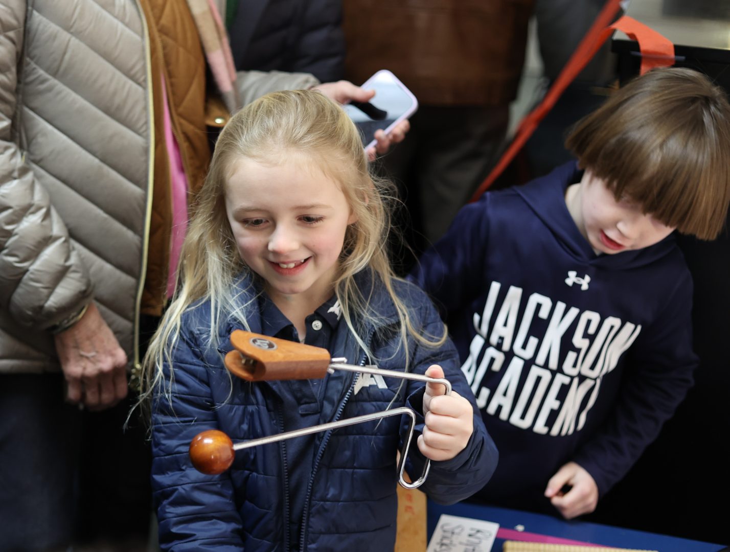 In physical education, students demonstrated their skills by teaching grandparents a game called Bucket Coin Toss, showcasing PE as an original element of JA’s programming that remains essential to the curriculum today. This game focuses on locomotor skills, underhand tossing, and counting. Music class brought joyful energy as first graders demonstrated how they build rhythm and musicality through song and movement. STEM class wowed grandparents with hands-on demonstrations of how science, technology, engineering, and math are taught today—making many wish they could return to school themselves. During Spanish/Bible class, the students impressed their elders with their Spanish vocabulary and Bible knowledge, including the books of the Bible!