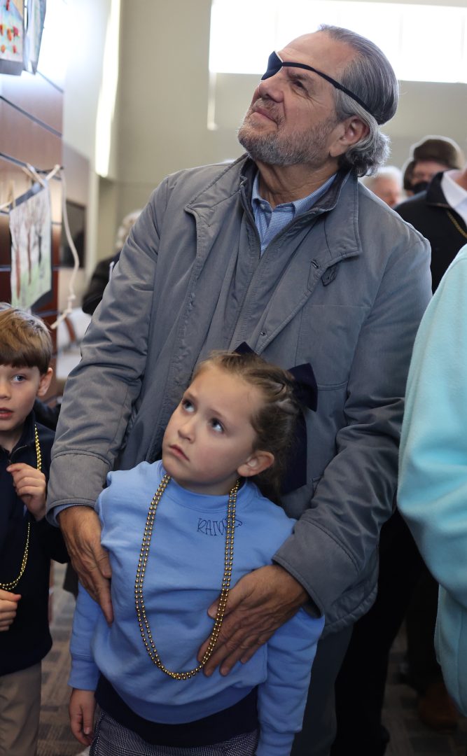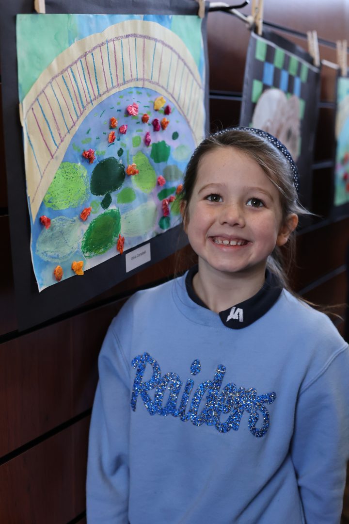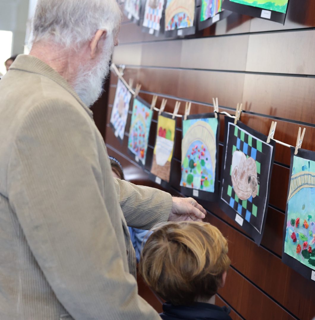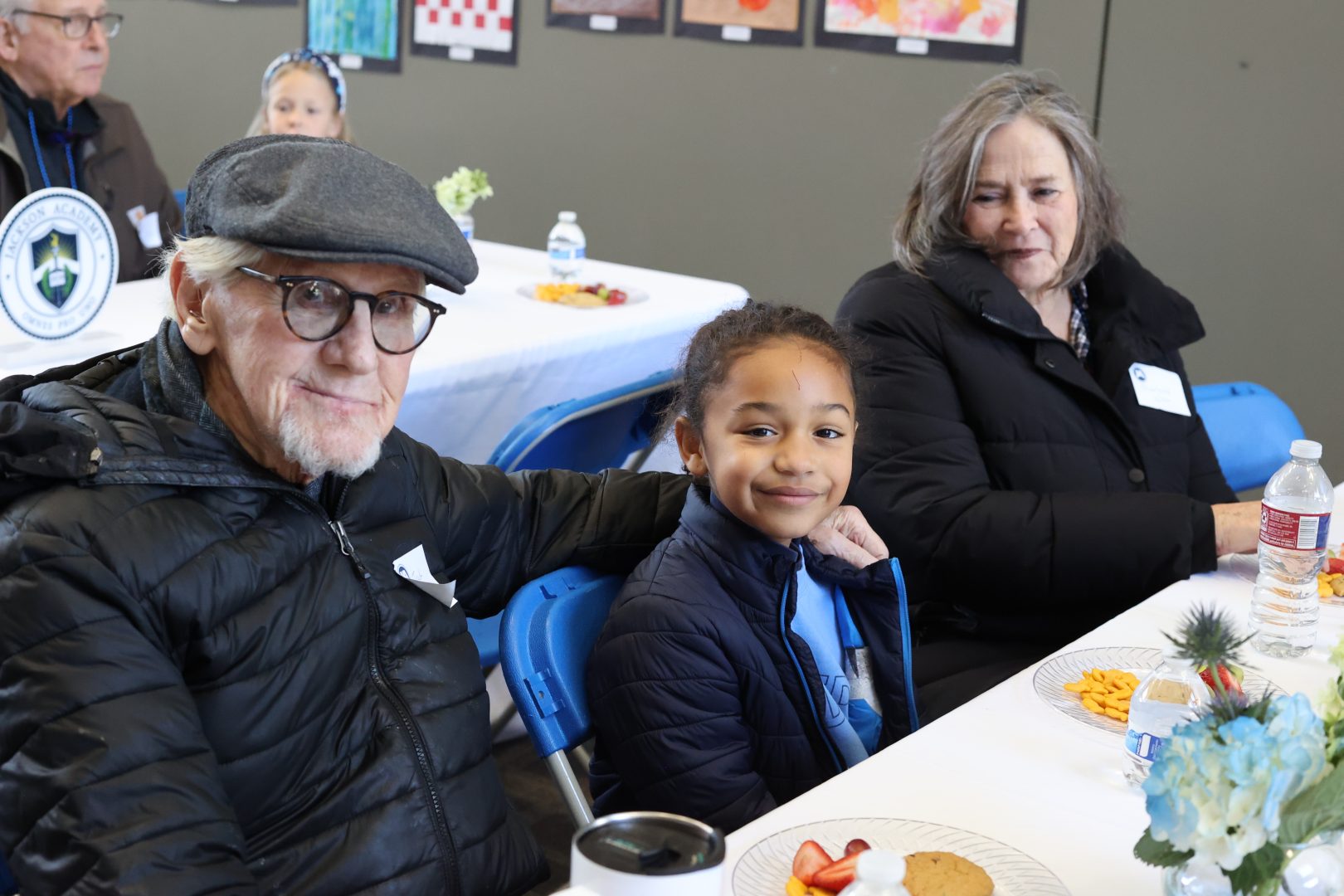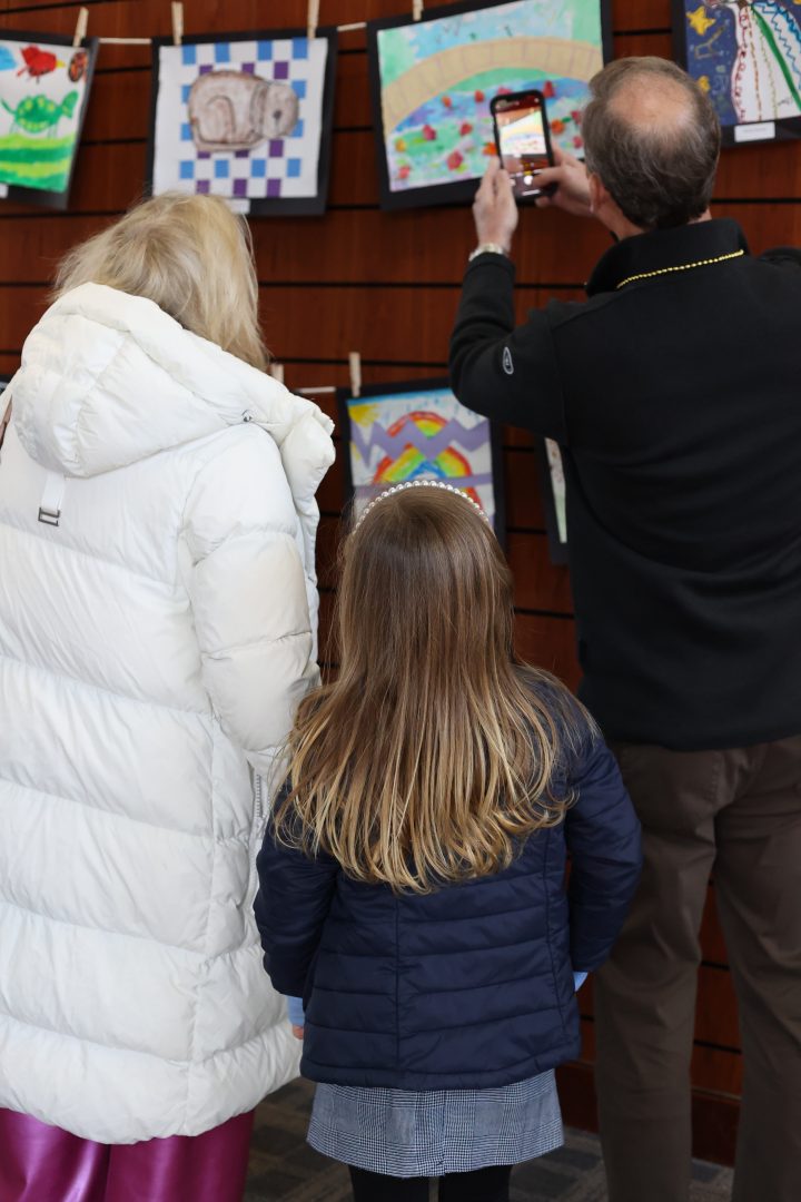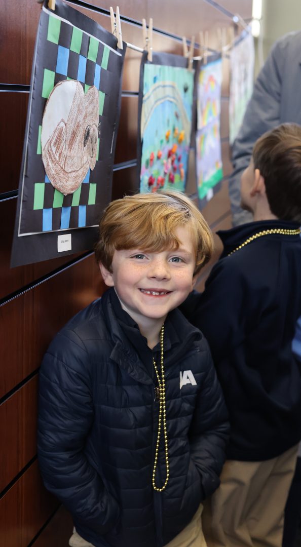 Just as in the early days when founder and principal Loyal Bearss built snack time into the rhythm of the school day, snacks continued to foster a positive atmosphere for learning. During refreshments provided by the JAA, students and grandparents enjoyed conversations about the student artwork adorning the walls of the Performing Arts Center Gallery. Each class’s work was displayed together, with pieces selected by the Lower School art teacher to represent every student.