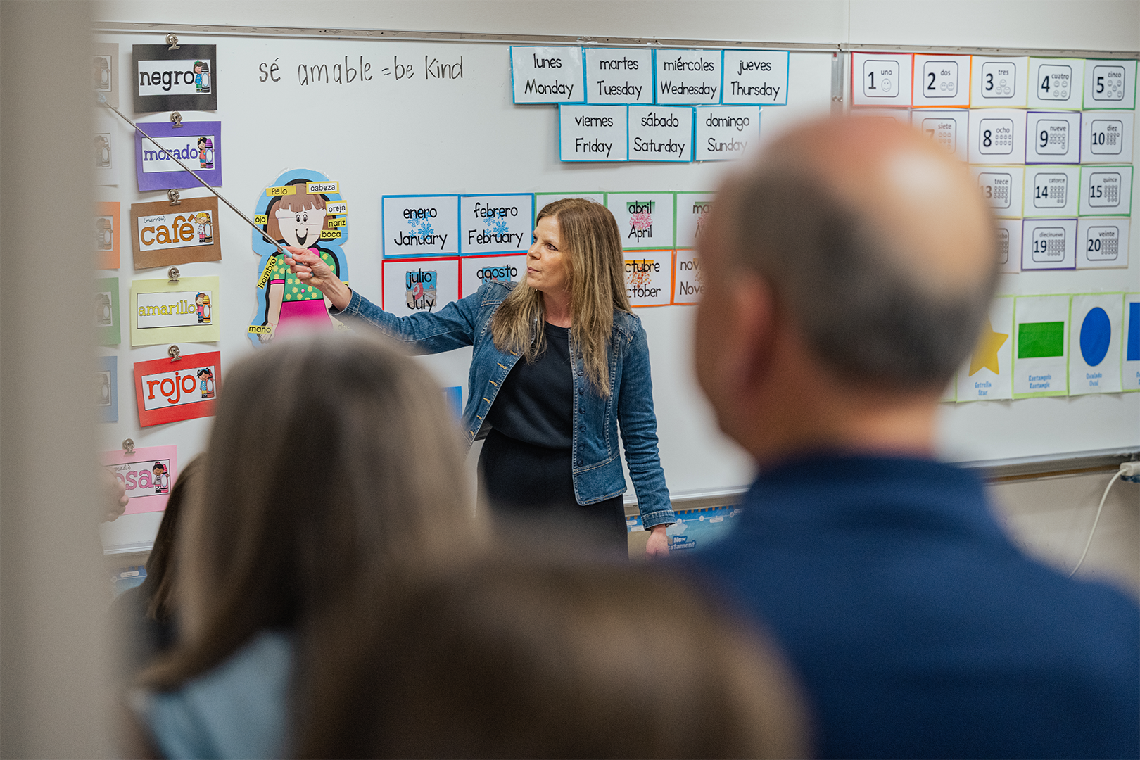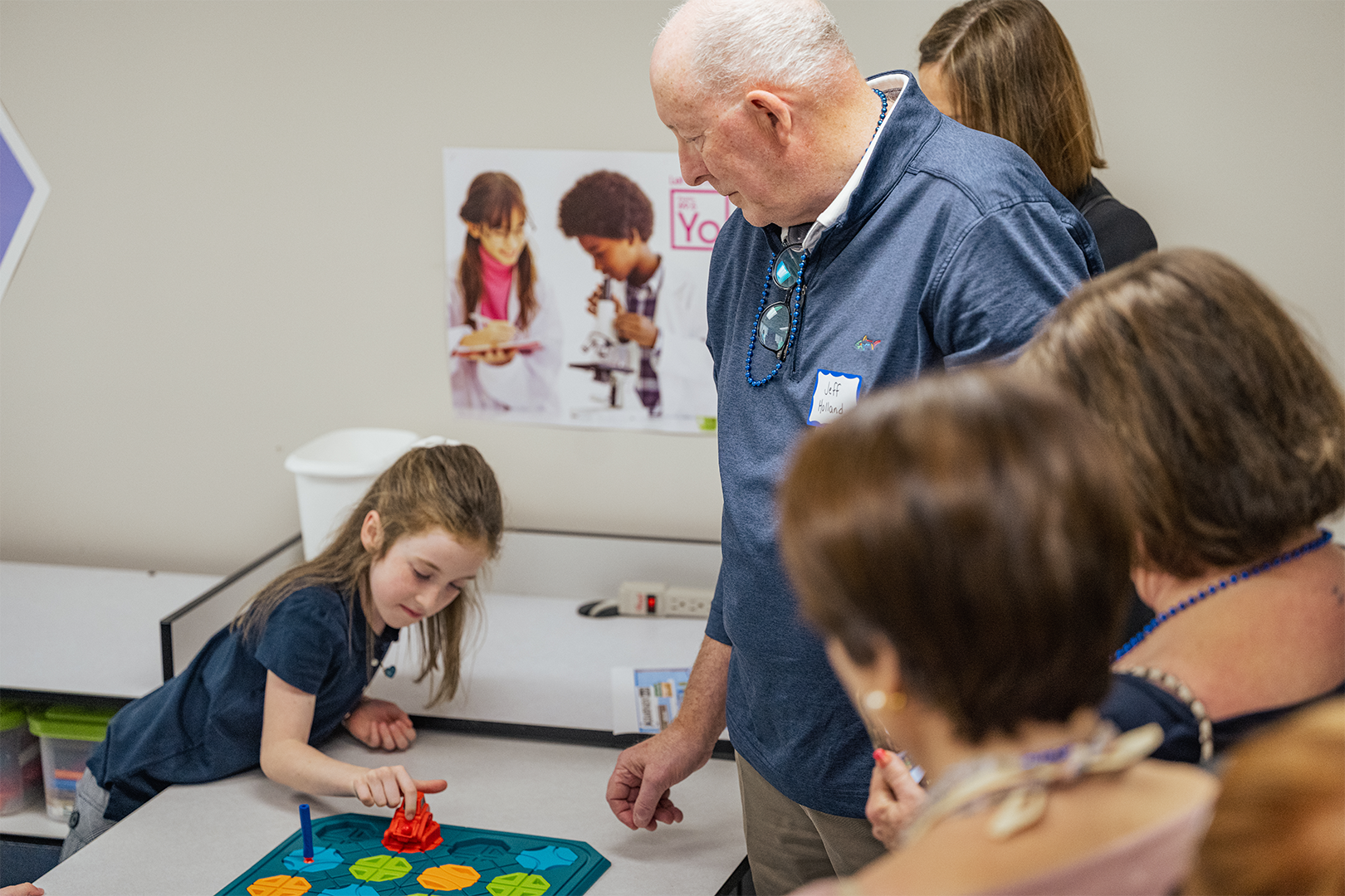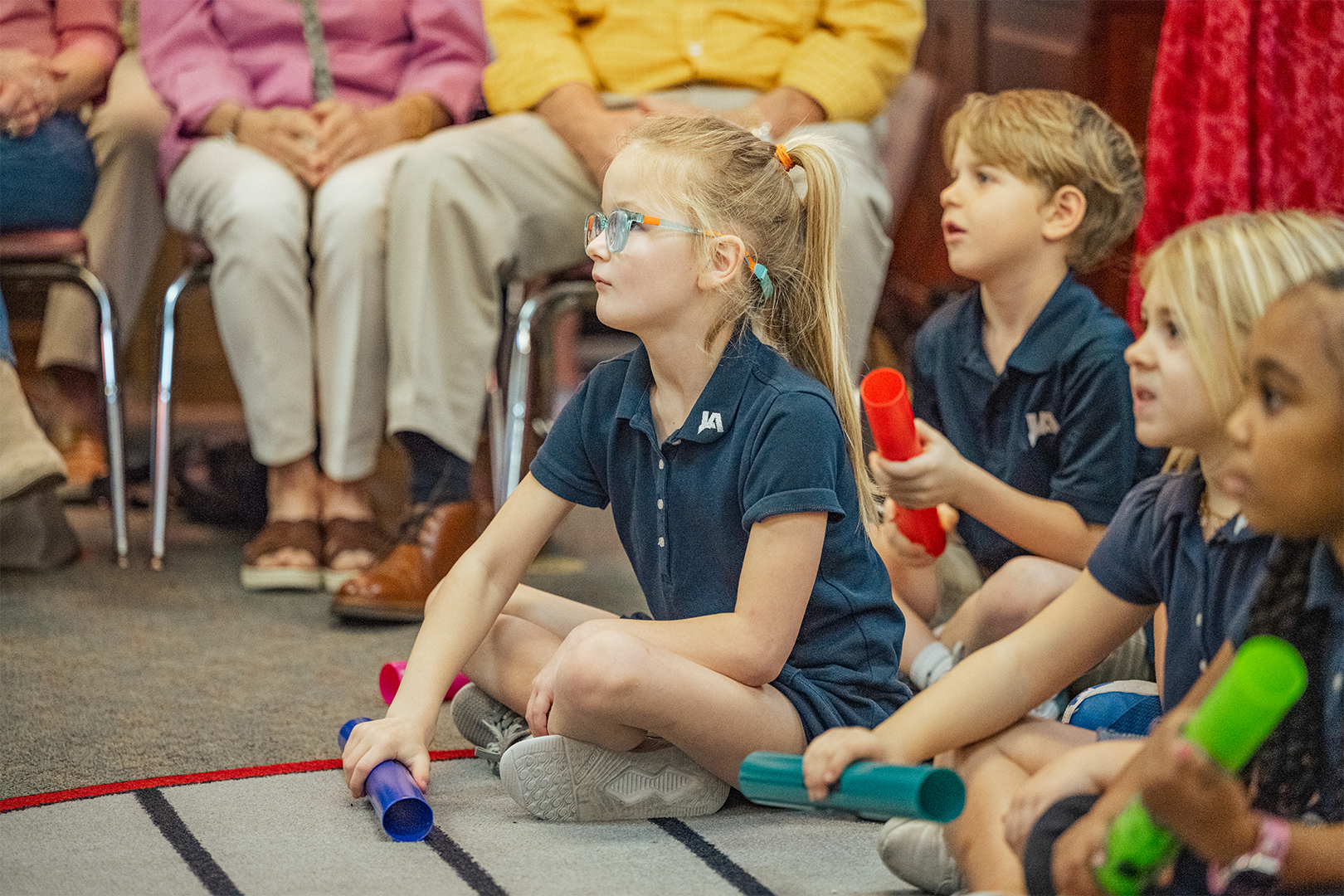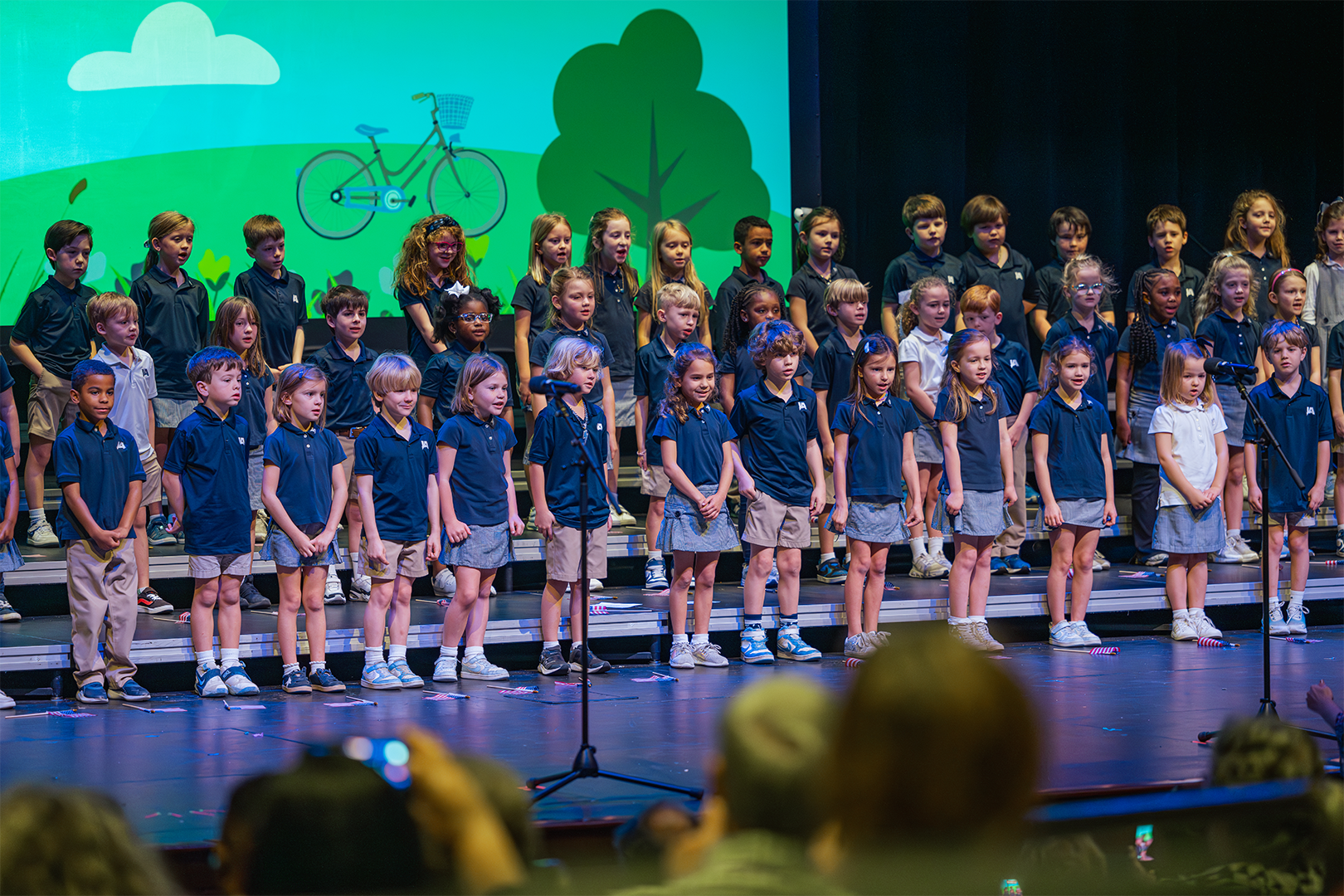 In physical education, students demonstrated their skills by teaching grandparents a game called Bucket Coin Toss, showcasing PE as an original element of JA’s programming that remains essential to the curriculum today. This game focuses on locomotor skills, underhand tossing, and counting. Music class brought joyful energy as first graders demonstrated how they build rhythm and musicality through song and movement. STEM class wowed grandparents with hands-on demonstrations of how science, technology, engineering, and math are taught today—making many wish they could return to school themselves. During Spanish/Bible class, the students impressed their elders with their Spanish vocabulary and Bible knowledge, including the books of the Bible!