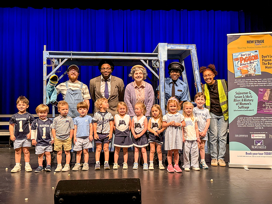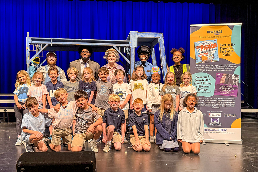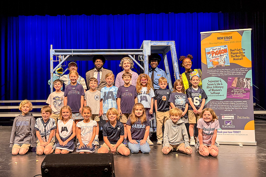 New Stage Theatre presented a performance of “Don’t Let the Pigeon Drive the Bus: The Musical” as part of the theatre’s Arts-in-Education statewide touring program. Kindergarten through second graders were entertained with catchy tunes and wild antics on the JA PAC stage Friday morning.